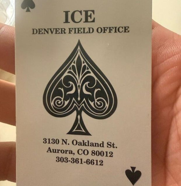 In January, some detainees in Eagle County discovered cards with an ace of spades, referred to as “death cards,” in their vehicles. These cards were marked with “ICE Denver Field Office” along with the address and phone number of the ICE detention facility located in Aurora. Family members of the detainees later found these cards.